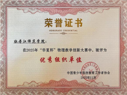 近日,第十届“华夏杯”物理教学创新大赛在陕西汉中举办。我院积极组织师生参赛,在杨昕卉、吴春雷两位老师的带队下,全体参赛师生展现强劲实力,最终斩获佳绩。参赛选手共获一等奖6项、二等奖9项、三等奖5项,张冰、郑友进、左桂鸿等6名教师获评“优秀指导教师”,我校荣获“优秀组织奖”,充分彰显了我院在物理教学创新领域的丰硕成果。